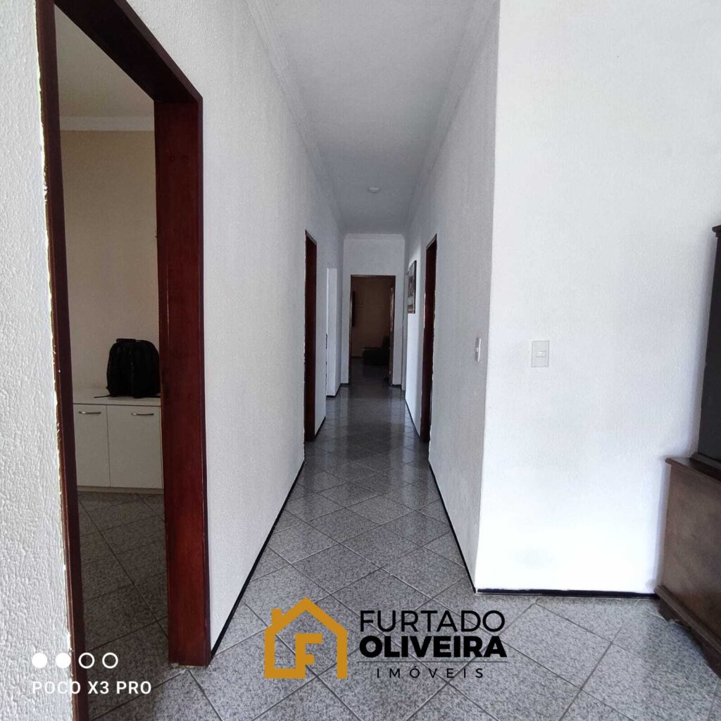 Casa com 246m² e um galpão com 70m². A casa possui 03 dormitórios (02 suítes), 01 banheiro social, 03 salas, cozinha, 02 áreas de serviços, varanda em L.